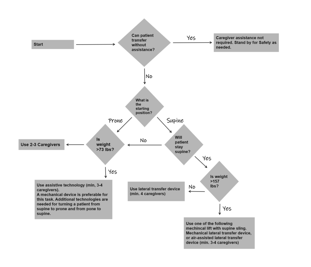 - During any patient transfer task, if any caregiver is required to lift more than 35 lbs of a patient’s weight, assistive devices should be used for the transferÂ